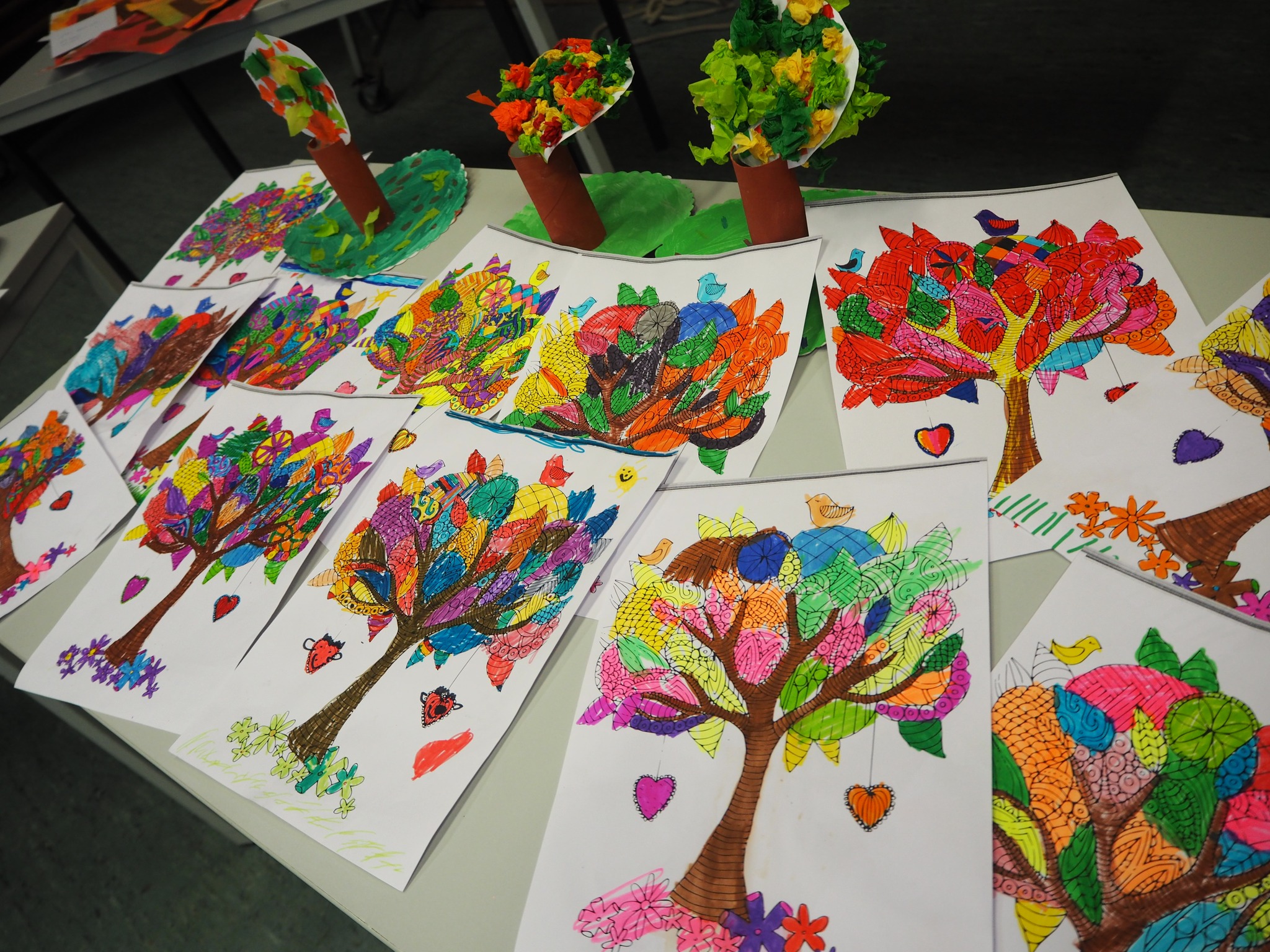 Merci aux instituteurs de l’Ecole Communale de Verlaine, dont les élèves ont fait un travail remarquable sur le thème de l’arbre! Des dizaines de petites œuvres complimentées par tous les visiteurs du jour!